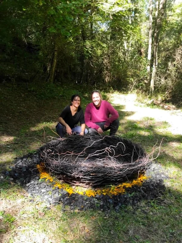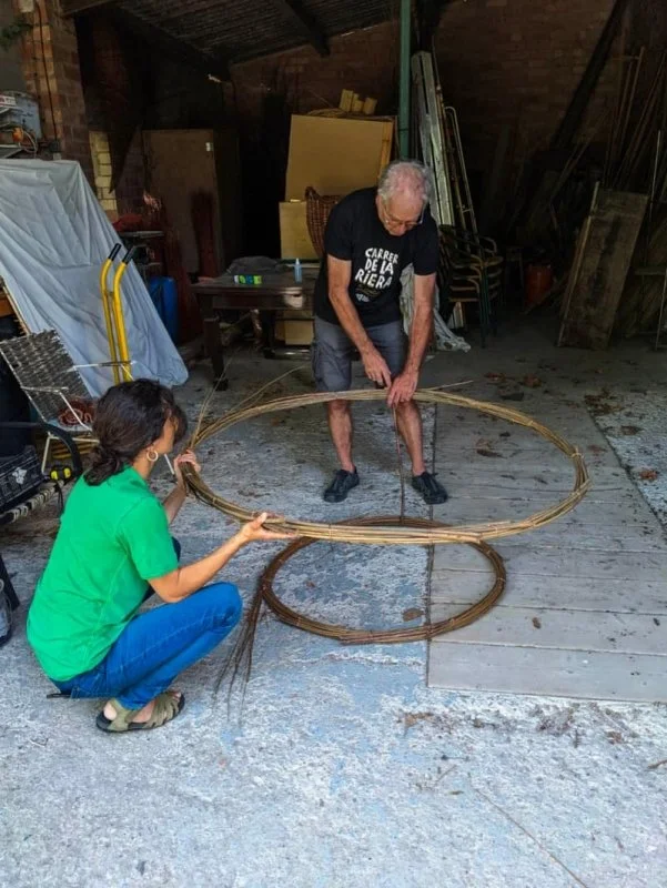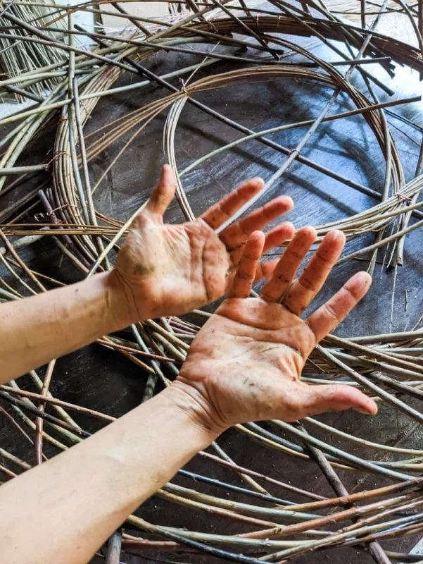 Fusta carbonitzada, pètals de nyàmera, vímet